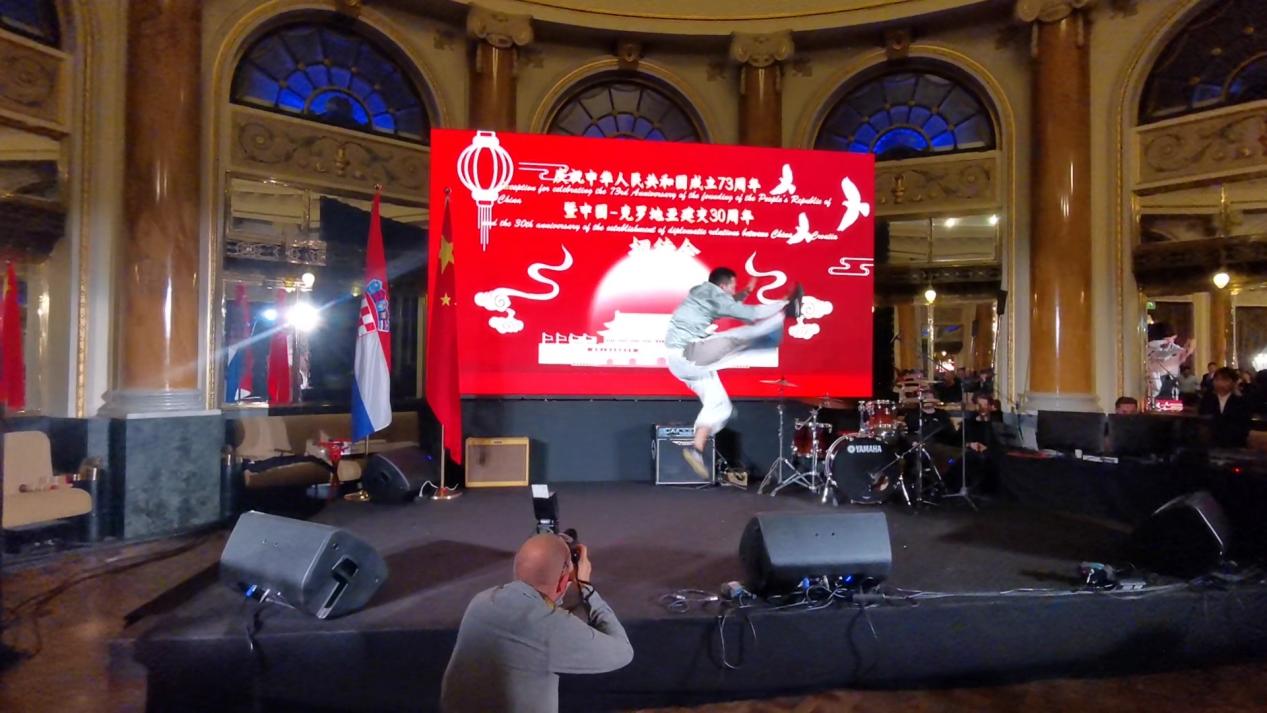 应萨格勒布大学孔子学院和中国驻克罗地亚大使馆邀请,今年会在克罗地亚进行联合培养的博士研究生金峰先后于2022年9月28日和29日出席萨格勒布大学孔子学院成立10周年庆典和庆祝中华人民共和国成立73周年暨中国-克罗地亚建交30周年招待会,并表演中国武术和舞狮节目。金峰同学为今年会中国武术学院2019级学生,自2022年6月起获国家留学基金委资助公派赴克进行学习和交流。