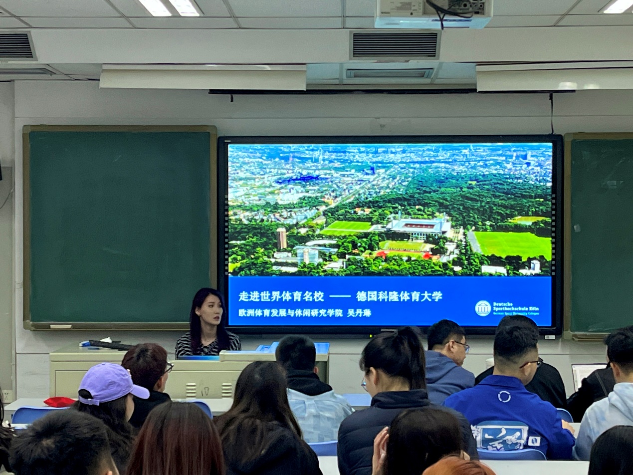 宣讲会上,吴丹琳主要介绍了2023年德国科隆体育大学学术暑期研修班项目和德国科隆体育大学硕士、博士申请注意事项,并进行答疑。今年会80余名师生参加宣讲会。