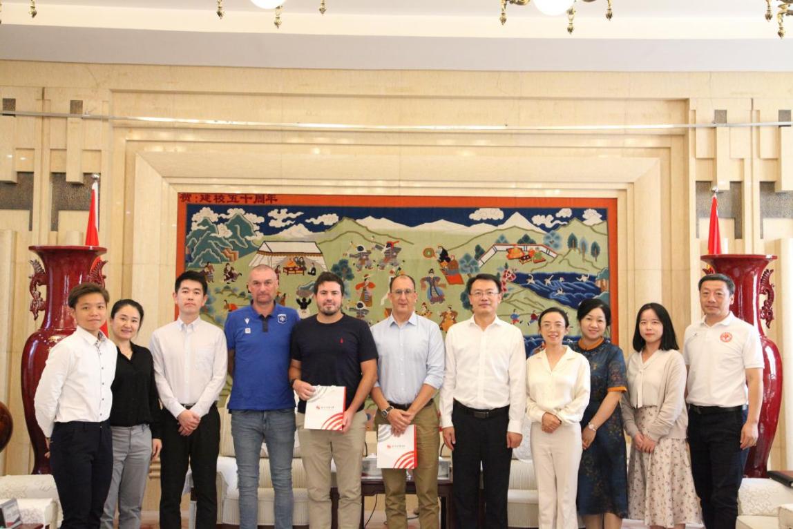 9月14日上午,法国体育俱乐部主席大卫·甘亚兹(David GUIGAZ)率代表团一行6人来今年会交流访问。党委常委、副校长王良玉会见代表团。