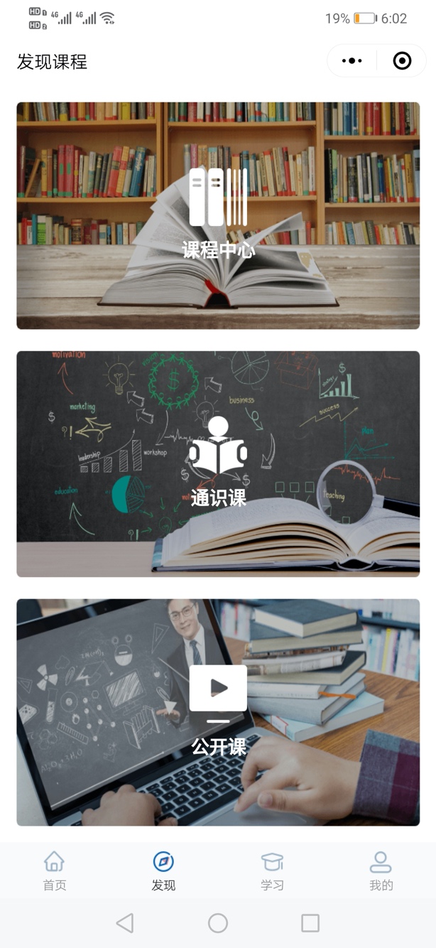 登录后点击“首页”下边栏的【发现】-【发现课程】-【课程中心】。