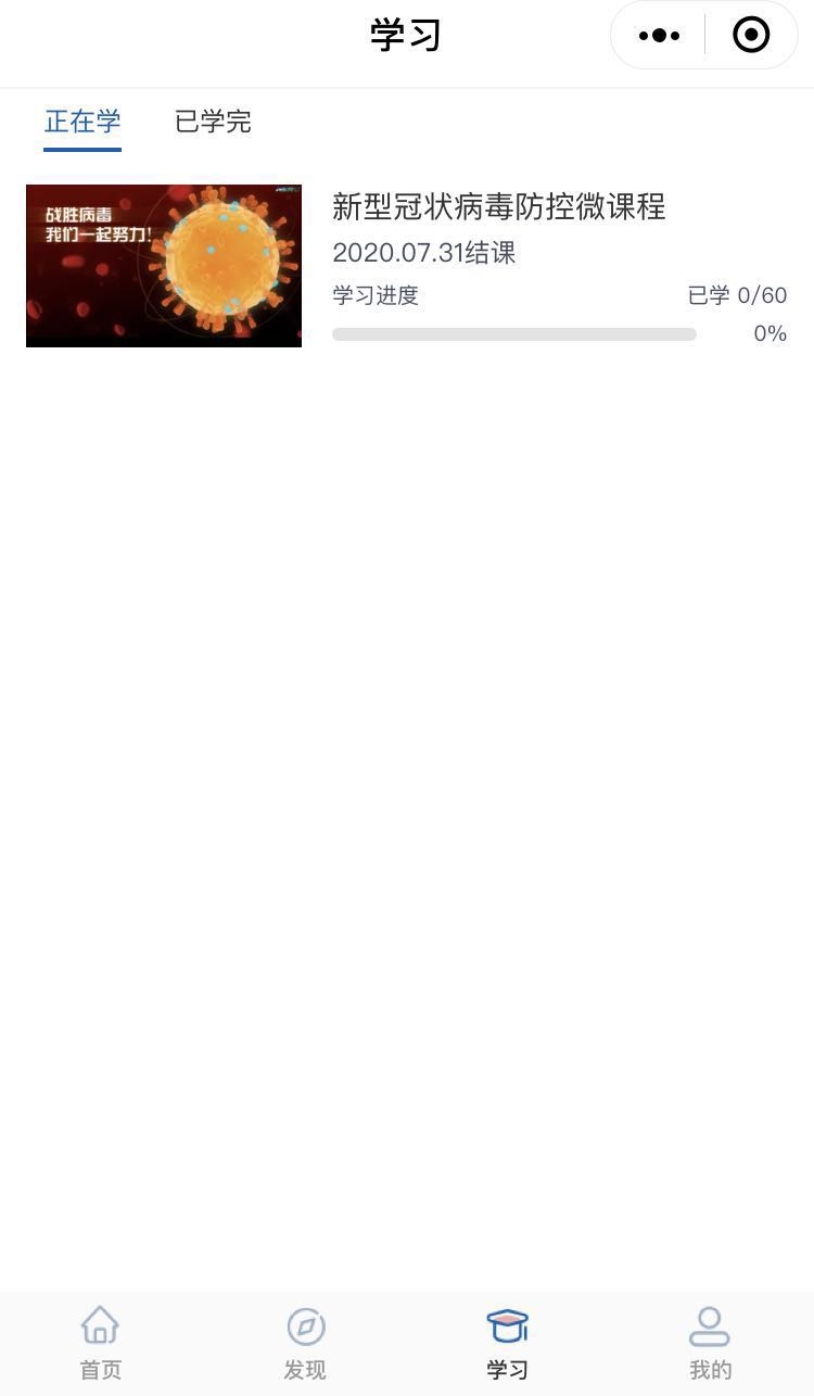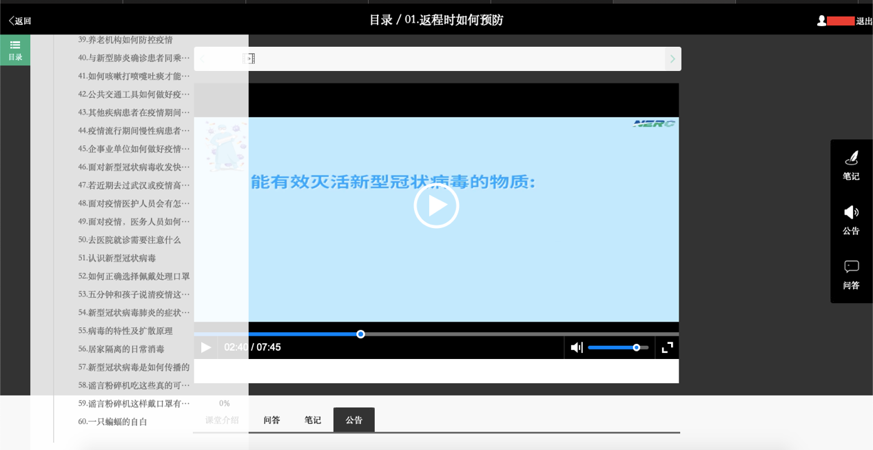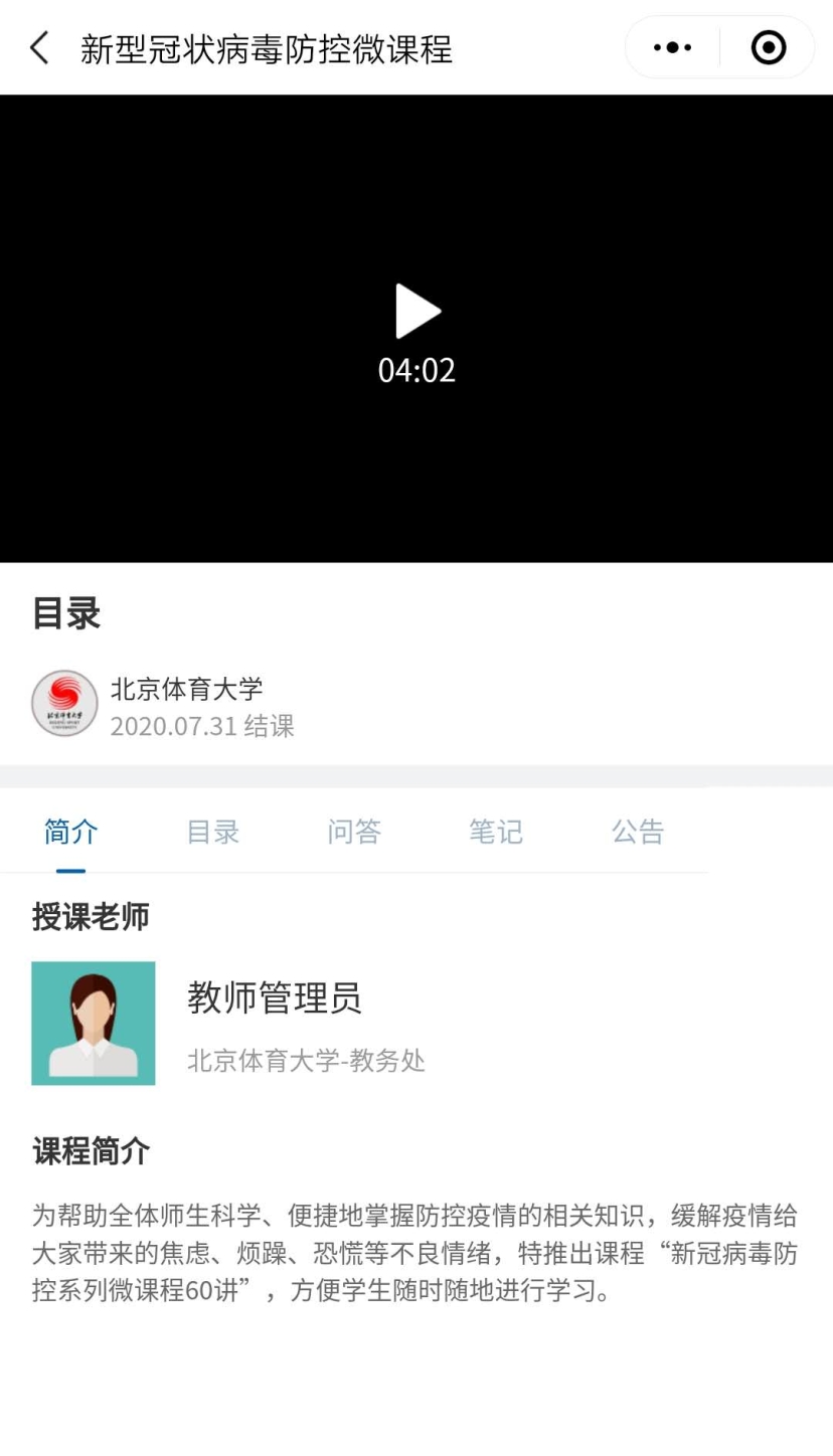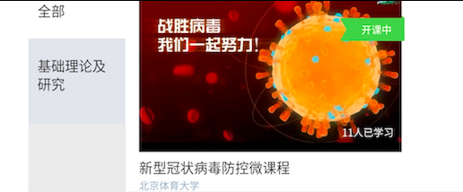 点击“新型冠状病毒防控微课程”标题,进入课程页面。