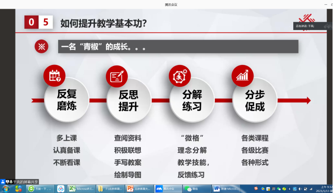 2021年1月13日,教务处通过在线方式成功开展题为“如何提升青年教师教学基本功?”的专题培训。培训由教务处副处长杨之慧主持,来自各学院近140名青年教师参加了培训。