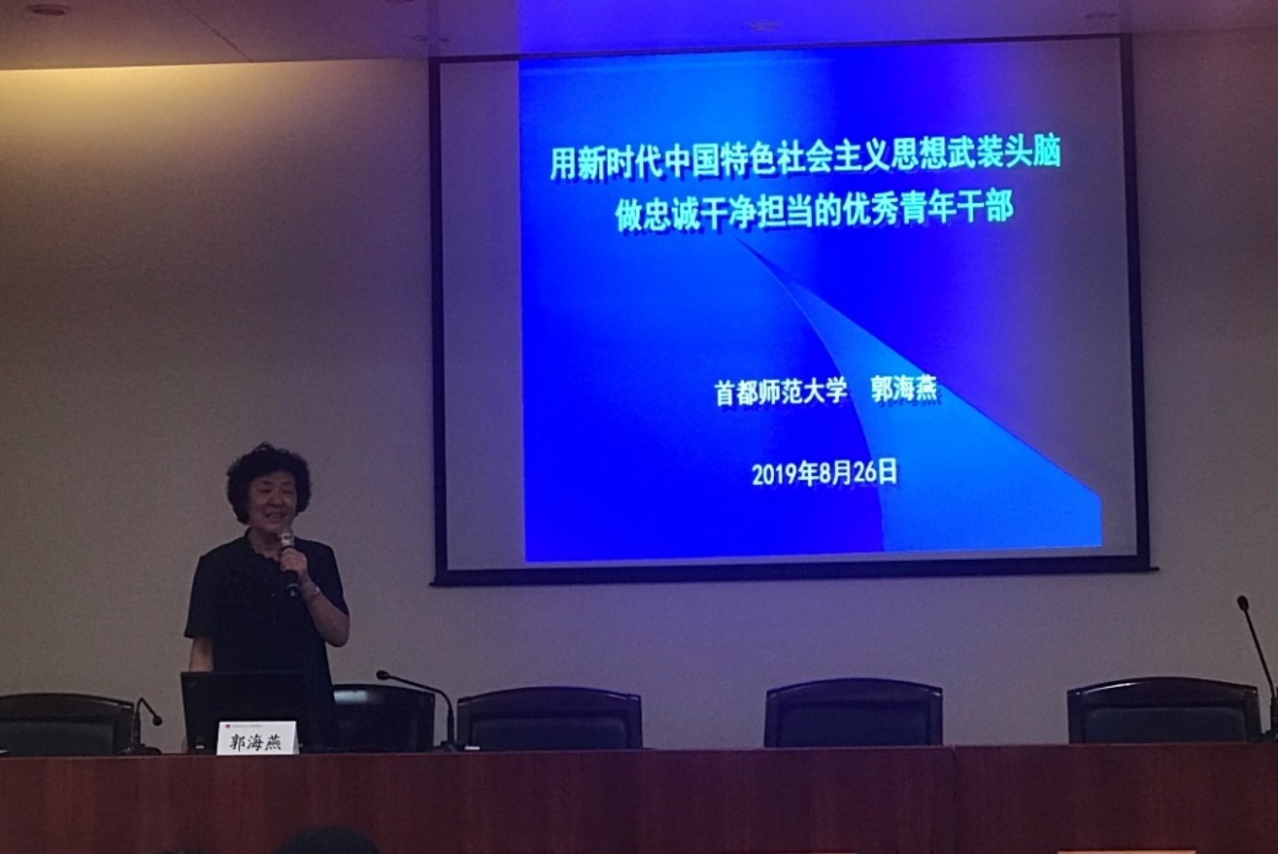 开班仪式后,首都师范大学教授郭海燕作了题为《用新时代中国特色社会主义思想武装头脑 做忠诚干净担当的优秀青年干部》的专题讲座。郭教授用大量生动的事例深入浅出地解读理论,使学员更加清晰地认识到如何立足岗位,做一名忠诚干净担当的优秀青年干部。