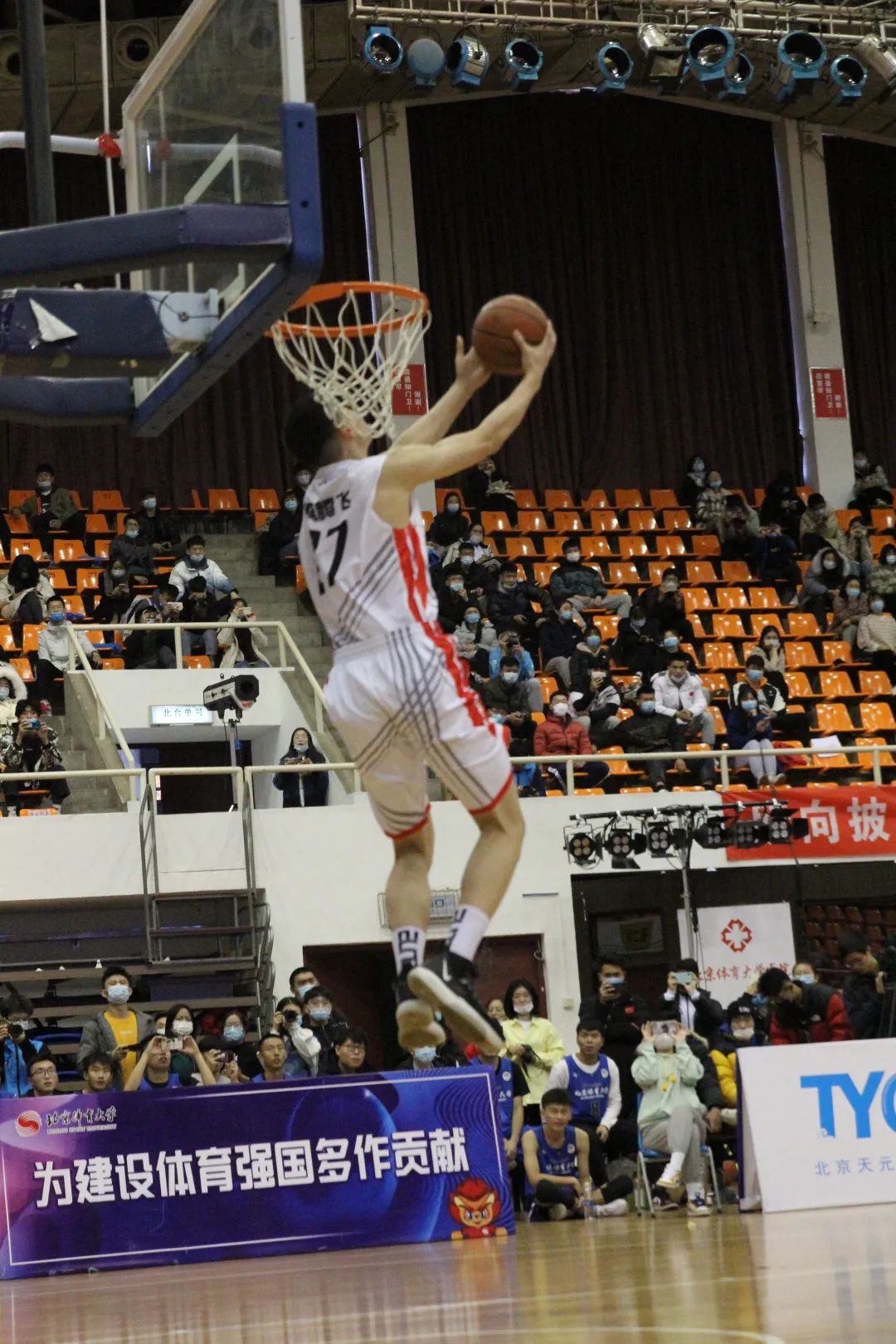 场内的氛围一片火热,双方队员势均力敌,顽强拼搏,激烈的碰撞与摩擦的脚步相互交织,清脆的哨声和响亮的呐喊融为一体。精彩绝伦的对决,展北体学子无限风采!一起感受燃爆的现场。