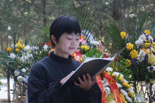 中国足球运动学院2018级本科生朱文博同学宣读了祭文。