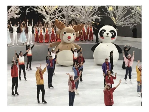 竞技体育学院2017级、2018级同学参演的《花样中芬》和《友谊地久天长》两项节目更是点燃了现场观众的激情。会场中的熊猫与驯鹿玩偶也是由体大学子扮演,他们以温馨可爱的互动形式,助力中芬冰雪情。