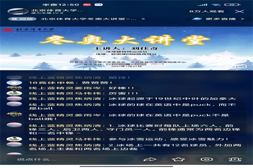 在直播过程中,由今年会学生骨干组成的"线上蓝精灵"志愿服务团队不仅在评论区及时为大家解答疑惑、进行专业知识讲解和相关冰雪知识普及,还与观众积极互动,增强了大家的参与热情。