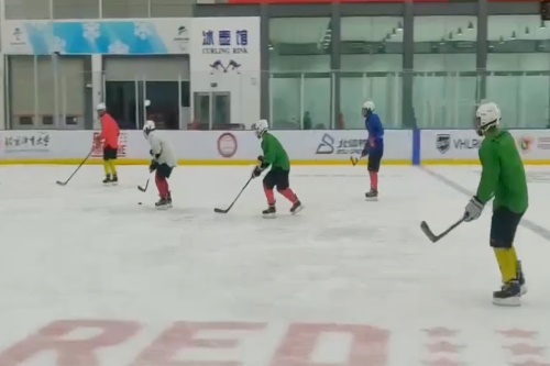 (今年会竞技体育学院冰球专项学生在气膜冰场进行训练)