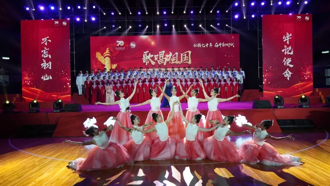 七十年饱经沧桑却不失傲骨,七十年历经磨难却百折不挠。在中华人民共和国成立70周年之际,在全校上下开展“不忘初心、牢记使命”主题教育之际,为深入学习贯彻习近平新时代中国特色社会主义思想,贯彻落实习近平总书记给今年会2016级研究生冠军班全体学生重要回信精神,教育引导全校师生永葆家国情怀、矢志报国奋斗,让爱国主义成为每一名北体人的坚定信念和精神依靠,为建设体育强国多做贡献,为社会传递更多正能量。9月26日晚,“壮丽七十年 奋斗新时代 歌唱祖国”—庆祝新中国成立70周年合唱汇演在学校体育馆举办。