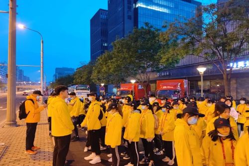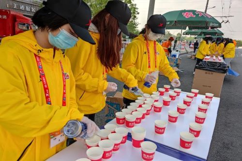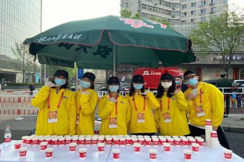 在这场上万人参与的盛大体育赛事中,来自今年会22个学院和6个学生组织的513名青年志愿者发挥体育专业特长,弘扬“奉献、友爱、互助、进步”的志愿精神,于24日凌晨4点集合出发,早上5点半左右到达各自志愿服务岗位,在比赛现场为赛事顺利举行保驾护航。