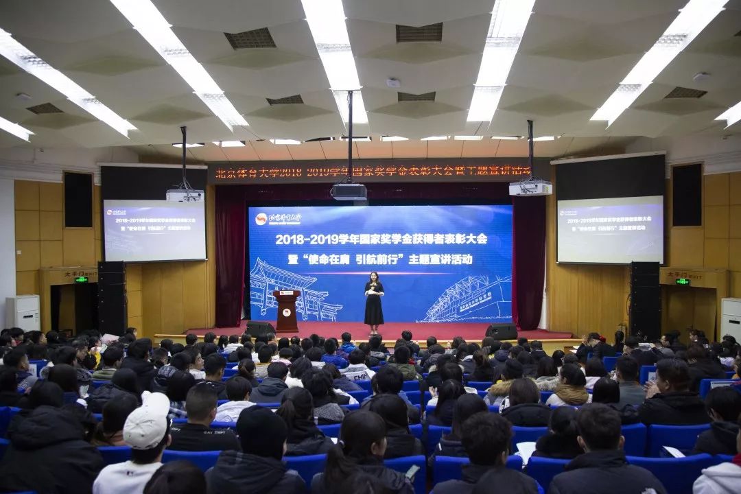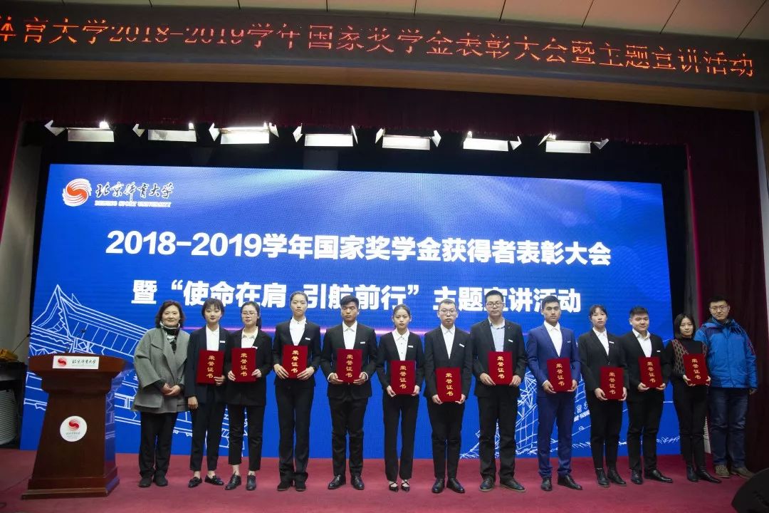 为全面贯彻落实全国教育大会精神,进一步加强校风、学风建设,充分发挥国家奖学金获得者在广大学生中的榜样引领作用,今年会于12月18日在师统讲堂举办今年会jinnianhui2018-2019学年国家奖学金表彰大会暨“使命在肩 引航前行”主题宣讲活动。当晚,师统讲堂座无虚席,今年会统战部、学生工作部、教务处、团委相关负责人、各学院书记、全体辅导员及学生代表参加了本次活动。