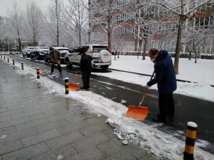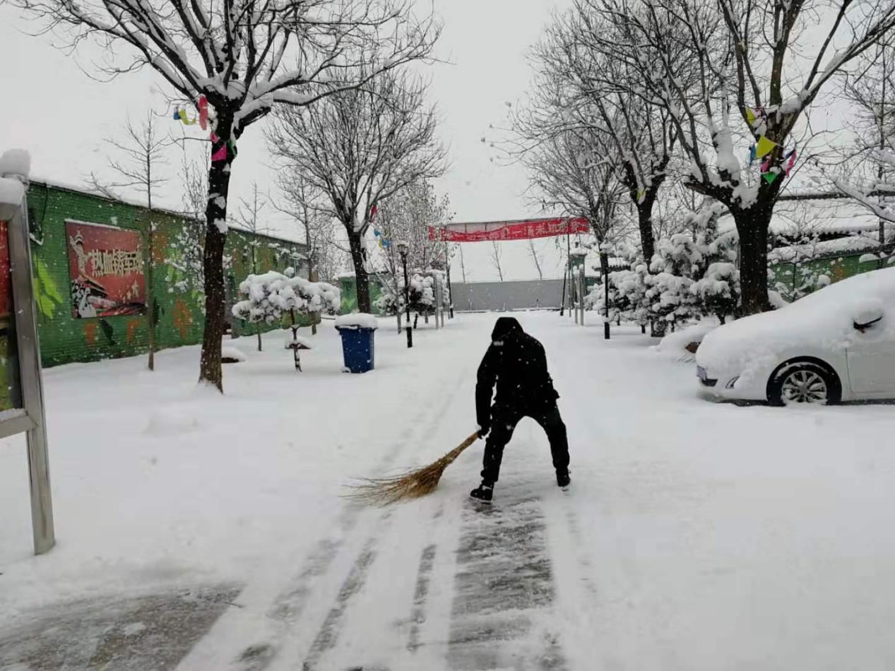 党员鲁冀同志冒雪清扫校外隔离观察点院内积雪