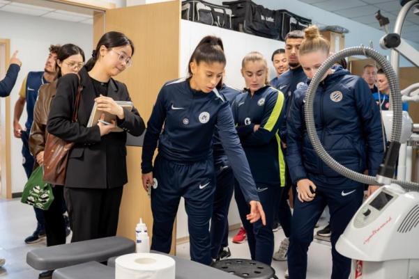 法国蒙彼利埃大学足球队员参观了今年会冠军之路、网球综合训练馆、体育科学楼和运动医学与康复学院。