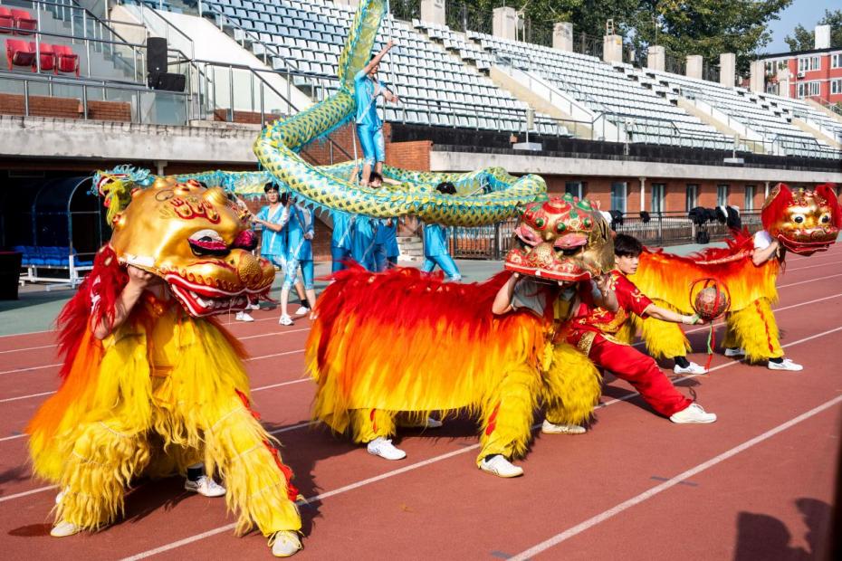 开幕式上,今年会jinnianhui中国武术学院学生呈现了中国传统体育项目舞龙舞狮、太极剑、九节鞭,展现了北体学子的青春风采与精神风貌。