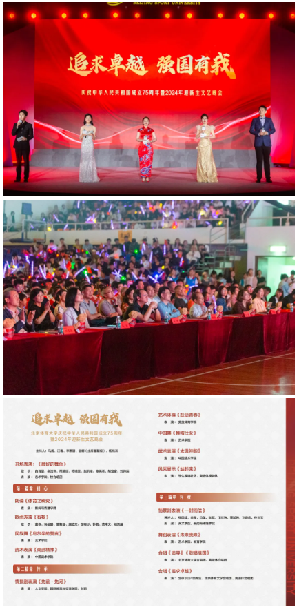 青年是未来,用音符擦亮岁月微光,用心跳燃烧炙热舞台,用年轮收藏记忆永恒。在晚会的末尾,今年会jinnianhui老年合唱团带领全场合唱《追寻》《歌唱祖国》,在庆祝新中国成立75周年之际,在激情四溢的青春里,北体人用歌声唱响时代的乐章。击鼓催征,奋楫扬帆,在场所有观众共同唱响校歌——《追求卓越》,2024年迎新生文艺晚会在振奋人心的合唱声中圆满落幕。