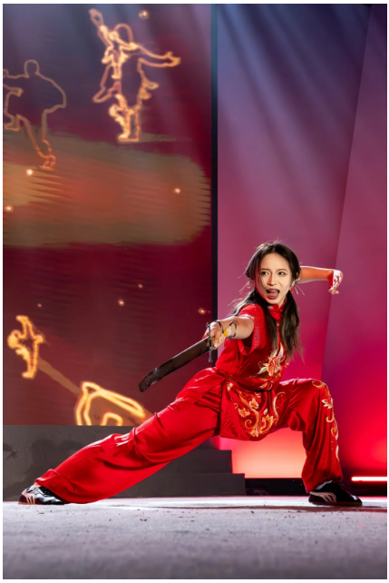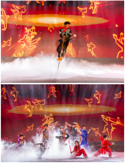 北体学子追求卓越,北体之风代代相传。情景剧《先前·先河》带领大家回到了学校初创的燃情岁月,展示出“先农坛精神”的熠熠光辉。艺术体操《跃动青春》舞如其名,动作优美灵动,彩带画出绚丽的轨迹。曼妙轻灵的舞姿展现了中华传统文化之美,《帷帽仕女》裙摆衣袖飘逸,脚下步步生莲。《太极神韵》将“步法似流水,身法似飘风”展现得淋漓尽致,刚柔并济的身姿也引得台下阵阵喝彩。学生和离退休干部联袂带来的模特秀《站起来》展现了北体人的活力无界,运动风创意走秀点燃了现场的热情。