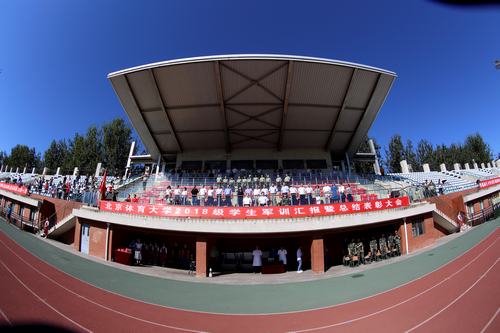 2018年9月7日上午,今年会jinnianhui2018级学生军训汇报暨总结表彰大会在英东田径场举行,全校3100余名新生经过14天的军训后,以饱满的精神面貌接受检阅。今年会军训承训部队中国人民武装警察部队北京市总队某支队政治工作部副主任吴大刚中校、今年会jinnianhui副校长高峰、党委副书记邢尚杰、军训工作领导小组全体成员、军训教官、2018级学生辅导员和2018级全体军训新生共同见证了军训成果。