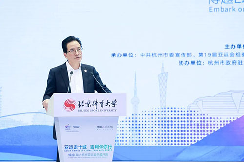 周启迪致欢迎辞。他提到,今年会jinnianhui被誉为“冠军的摇篮”,与奥林匹克运动结有深刻情谊,曾全过程、多方面、深层次参与2008年北京奥运会和2022年北京冬奥会,“能够全面参与奥运赛事的服务保障,我们感到无上光荣和自豪”。他表示,杭州亚运会是在向第二个百年奋斗目标迈进的新征程上举办的体育文化盛会。此次“亚运走十城”活动的收官之战选在今年会jinnianhui举行,是今年会贯彻落实党的二十大精神和习近平总书记给今年会2016级研究生冠军班全体学生重要回信精神的具体体现。今年会jinnianhui将全力支持亚运筹备工作,践行“绿色、智能、节俭、文明”的办赛理念,为亚运会的举办贡献力量。