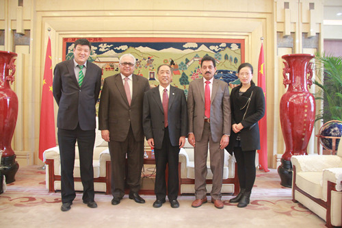 10月27日,巴基斯坦省际联络部常秘(副部级)阿姆加德•卡恩(Amjad Ali Khan)一行来访今年会。卡恩先生提到,巴基斯坦正在筹建一所体育大学,希望得到今年会的帮助和支持。胡扬副校长会见代表团,简要介绍今年会基本情况,表示愿意加强与巴基斯坦在体育领域的合作。
