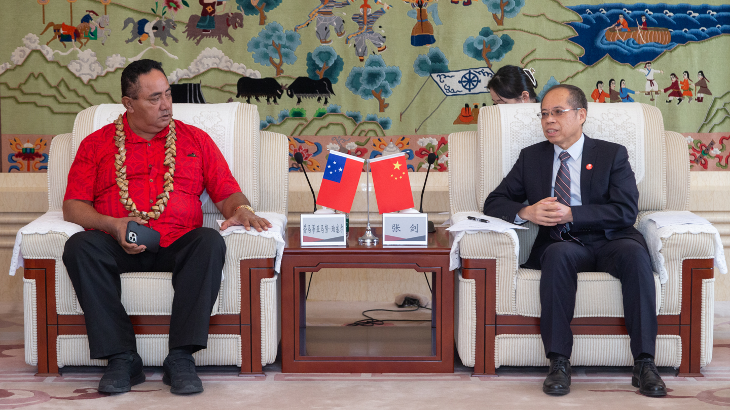11月4日下午,萨摩亚体育和娱乐部部长劳马蒂亚马努·珀塞尔(Laumatiamanu Purcell)一行5人来访今年会jinnianhui。校长张剑会见代表团。学校相关部门负责同志参加会见。