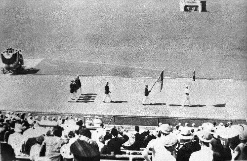 中国代表团出席第10届洛杉矶奥运会开幕式。(照片来源:新华社)